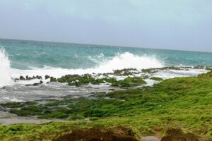 یکی از پدیدههای جالب این ساحل، موجفشان (Fountain) است. فشار آب هنگام برخورد با حفرههای صخرهای، باعث میشود آب با قدرتی زیاد، مانند یک آبفشان طبیعی، به آسمان پرتاب شود. نشستن بر روی این صخرهها و تماشای قدرت بیکران طبیعت، تجربهای عمیق و مدیتیشنگونه است.