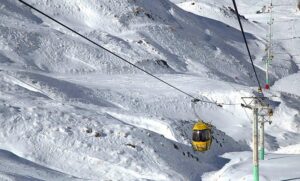 تلهکابین ما را به آرامی به ارتفاع بیش از ۳۶۰۰ متری میبرد. زیر پایمان، دامنههای وسیع پوشیده از برف پودری و دستنخورده برق میزند؛ برفی که به خاطر خشکی و سبکیاش، در میان اسکیبازان حرفهای شهرت جهانی دارد. از این ارتفاع، منظره نفسگیر است. قلههای سر به فلک کشیده البرز، از جمله دماوند باشکوه که از دوردستها خودنمایی میکند، اقیانوسی از ابرها را شکافتهاند.