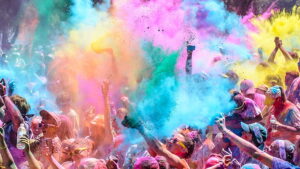 - هولی (Holi): جشن رنگها در ماه مارس که مردم با پودرهای رنگی یکدیگر را رنگین میکنند — سمبل بخشش و آغاز بهار.