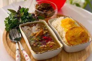 - قرمه سبزی: محبوبترین غذای ایرانیان؛ خورشتی سبز رنگ با سبزیجات معطر، لوبیا و لیمو عمانی.