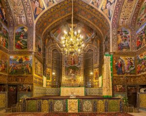 - کلیسای وانک: در محله جلفا، کلیسایی با نقاشیهای دیواری خیرهکننده وجود دارد که نماد همزیستی مسالمتآمیز ادیان در ایران است.