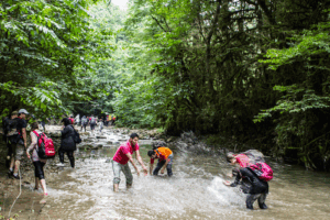 از اینجا به بعد، باید با پای پیاده یا با خودروهای محلی تا عمق جنگل پیش رفت. صدای آب که کمکم از دور شنیده میشود، نشانهی رسیدن به رودخانهی پلنگدره است؛ رودی زلال و خنک که از دل کوههای البرز سرچشمه گرفته و همچون رشتهای از نقره در جنگل میدرخشد.