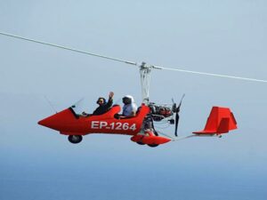 جایروکوپتر کیش در بین تفریحات غیرآبی، یکی از بهترین گزینهها برای تجربه پروازی ایمن و مفرح بر فراز جاهای دیدنی کیش و خلیج فارس است. جایروکوپتر یا هلیکوپتر تفریحی تلفیقی از هلیکوپتر و هواپیما است که فقط برای دو نفر ظرفیت دارد و شامل خلبان و مسافر می شود. مدت زمان استفاده از آن نیز حدودا ۱۲ دقیقه است.