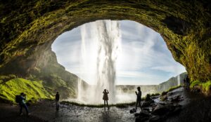 - آبشارهای سلیالاندفوس و اسکوگافوس (Seljalandsfoss & Skógafoss): این دو آبشار غولپیکر، نمادهای ایسلند هستند. ویژگی منحصربهفرد سلیالاندفوس این است که میتوانید به پشت پرده آب بروید و منظرهای بینظیر را تجربه کنید. اسکوگافوس نیز با عرض زیاد و قدرت خیرهکنندهاش، شما را مبهوت میکند. در روزهای آفتابی، رنگینکمان دائمی در پای آن تشکیل میشود.