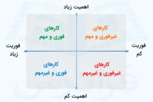 روش ماتریس آیزنهاور (اهمیت/فوریت): تقسیم وظایف به چهار دسته: